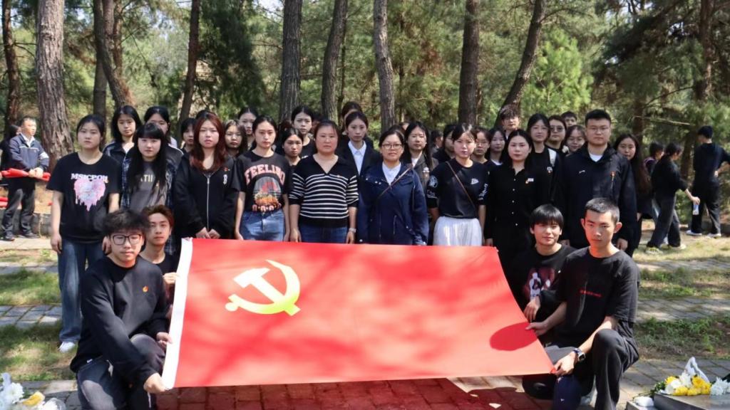 陵园志愿者带领师生共同回顾历史,了解这片烈士陵园所承载的光荣,百花湖烈士陵园长眠着许多无私奉献的英勇烈士,有十四名英雄甚至都不知道他们的名字,革命烈士展现了高尚品质和英雄气概,他们的事迹将永远铭刻在人们的心中。了解英雄事迹后,为缅怀先烈的丰功伟绩,表达师生无尽的哀思和崇高的敬意,全体师生为烈士们默哀三分钟。默哀结束后,师生队伍着装整齐,队列有序,缓缓地走向烈士们的墓碑,为烈士们献上花篮。最后,全体师生党员在党旗前重温入党誓词,铿锵有力的宣誓声久久回荡陵园中,激励大家不忘初心,牢记使命,增强党员意识,强化党性修养,切实筑牢为党和人民奋斗终身的坚定信念;全体团员在团旗前重温入团誓词,时刻提醒着团员始终保持青春的朝气和奋斗的精神,团结在党中央的周围,时刻将为人民服务作为首要任务。