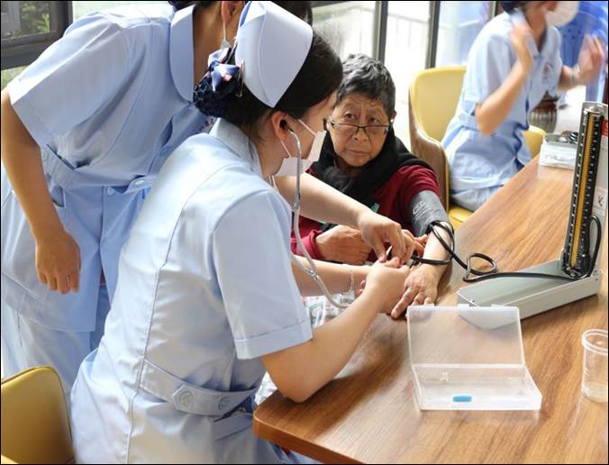 永利23411集团员工为老人测量血压